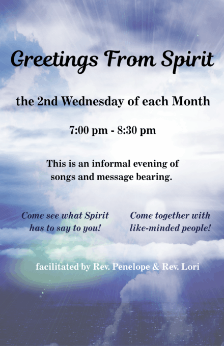 Come to FSC to celebrate “Greetings From Spirit,” with Rev. Penelope and Rev. Lori!
